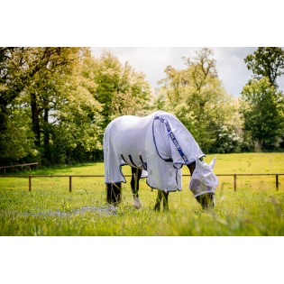 Le couvre-cou amovible ajusté garantit que votre cheval est toujours couvert lorsqu’il est au pâturage, et les boucles intégrées rendent la chemise compatible avec notre doublure imperméable anti-mouches pour protéger votre cheval pendant les sorties d'été, mais aussi à d'autres périodes de l'année où les piqûres d'insectes peuvent être une source d'irritation.