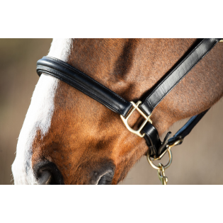 - Têtière à double réglage, rembourrée et doublée de cuir souple et ornée de 2 petits inserts décoratifs