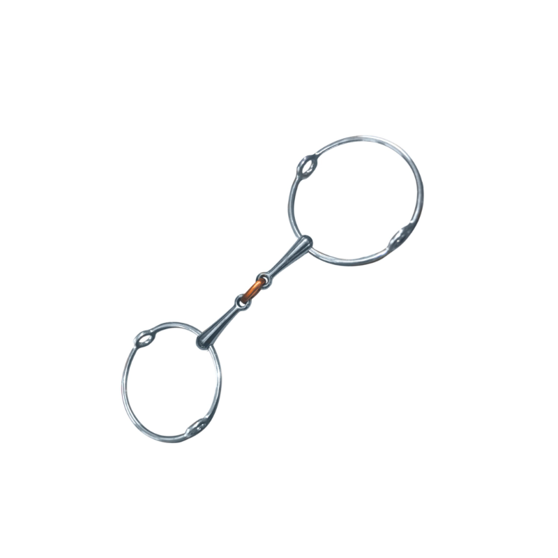 Ce mors en double brisure aura une action plus douce sur le palais du cheval, privilégiant la décontraction et le confort de la bouche.